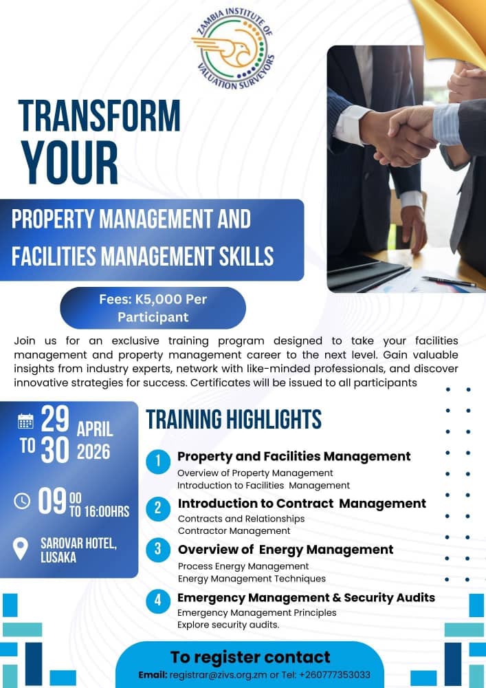 The Zambia Institute of Valuation Surveyors (ZIVS) is the sole regulatory authority for valuation and property professionals. Established under Act No. 9 of 2023, we set rigorous standards for property valuers, managers, administrators, and facilities professionals.